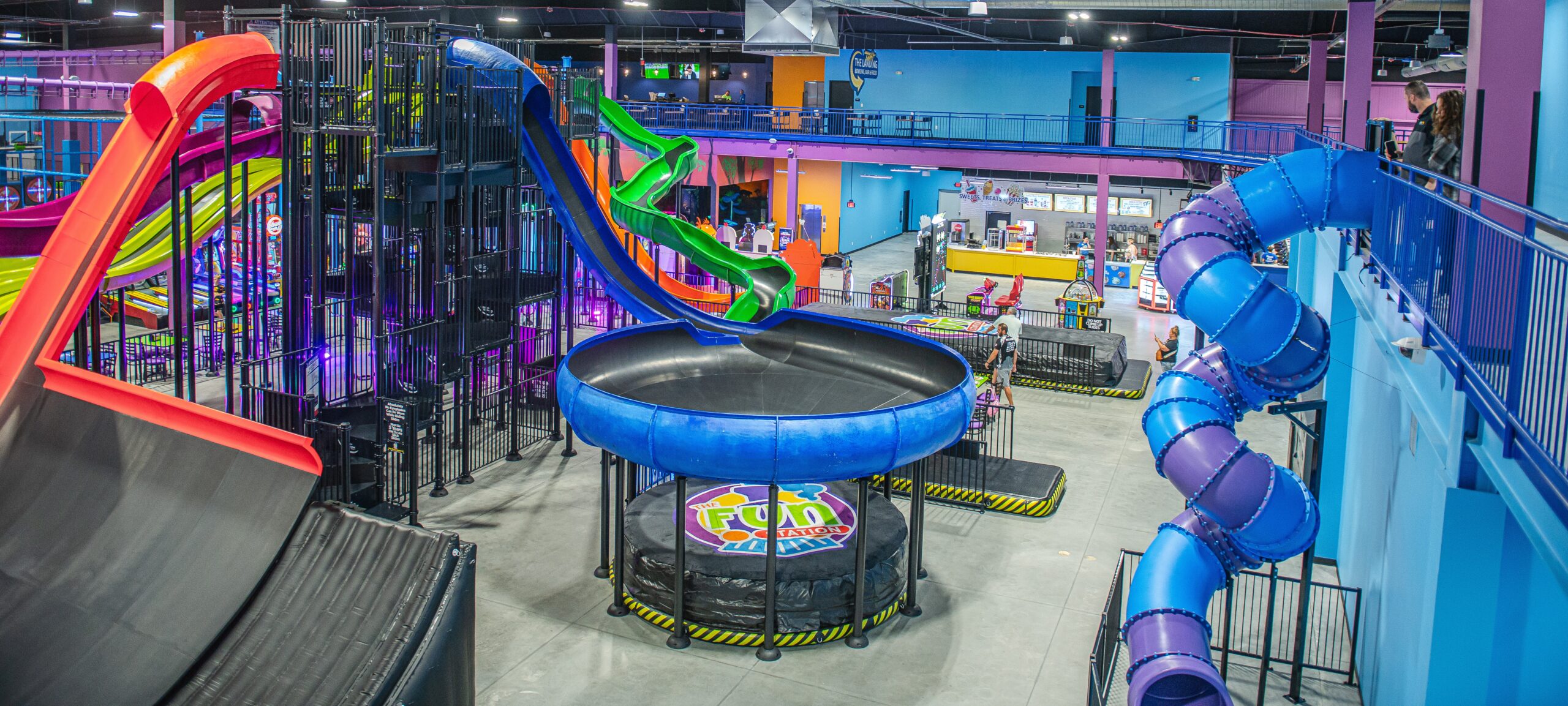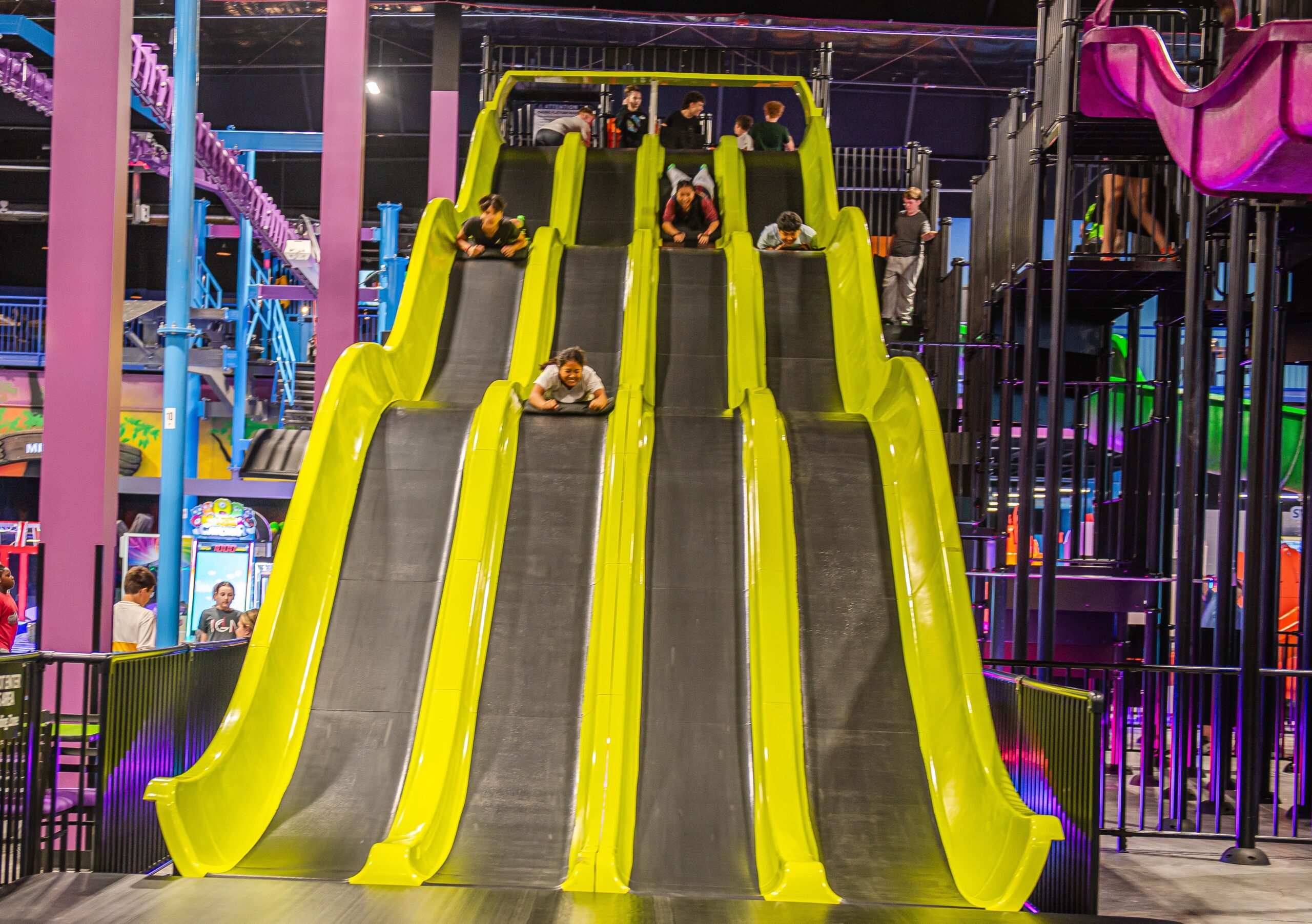 Imagine a waterslide without the water! Featuring 6 one of kind Slick Slides!