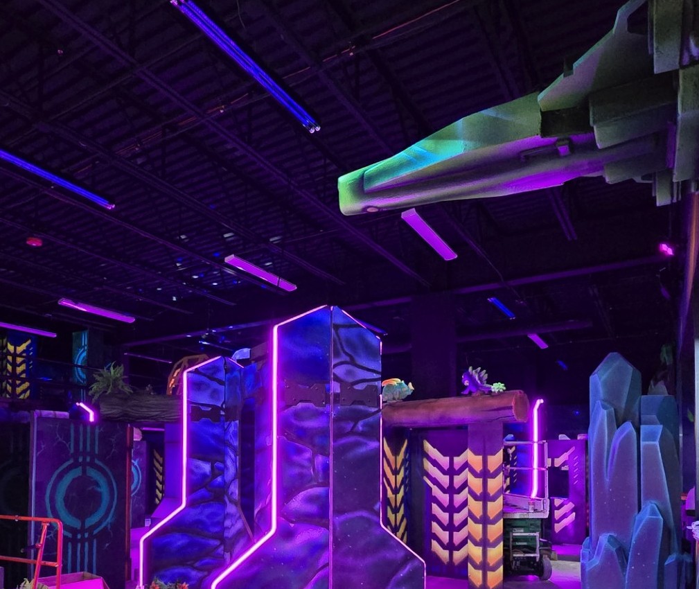 This is not your ordinary Lazer Tag arena! 2 Levels of non-stop action! Up to 26 players can battle it out in this epic arena!