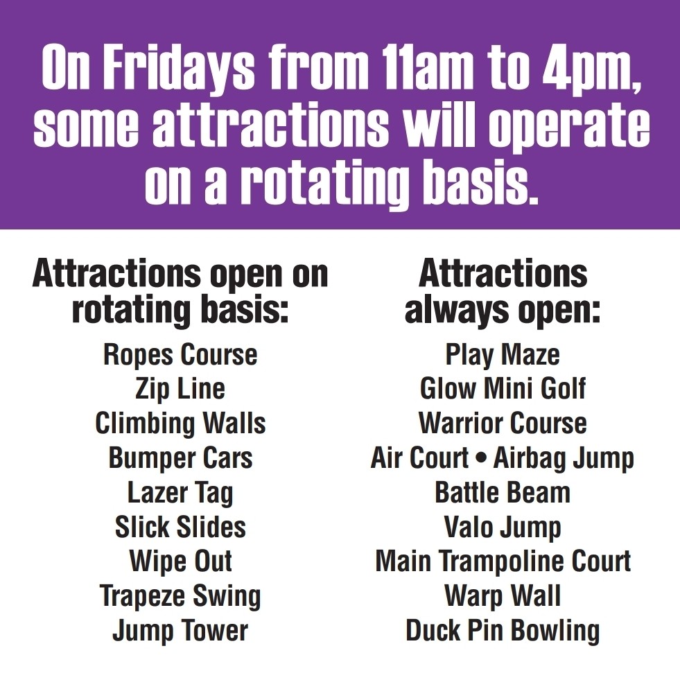 16 November 2025OPEN 10AM TO 8PM 16 | 17 November 2025NO SCHOOL - OPEN 10AM TO 5PM 17 | 18 November 2025OPEN 3PM TO 8PM 18 | 19 November 2025OPEN 3PM TO 8PM 19 | 20 November 2025OPEN 3PM TO 8PM 20 | 21 November 2025From 11am to 4pm - some attractions will operate on a rotating basis 21 | 22 November 2025OPEN 10AM TO 10PM 22 |