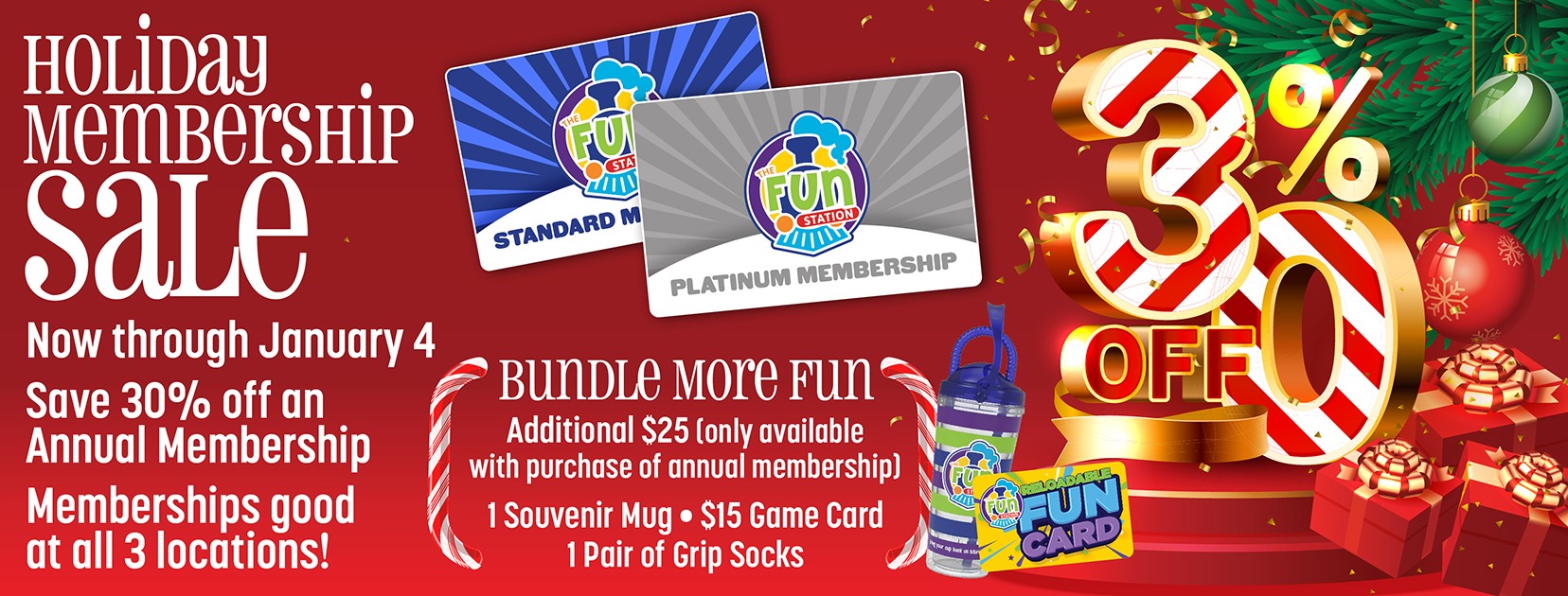 - Memberships can be used at ANY Fun Station location